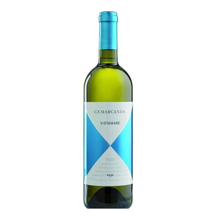 Vistamare. Der Seeblick. Er erscheint in einem leuchtenden Gelb und hat einen grünen Schimmer. Am Gaumen ist er vollmundig, elegant und mit lang anhaltendem fruchtigen Geschmack.