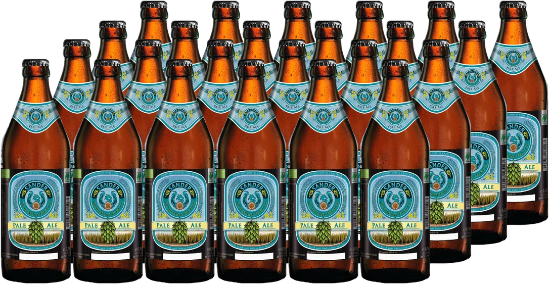 Alle Informationen zu 24x Braumanufaktur Sander Pale Ale Für den Sommer haben wir ein kaltgehopftes Pale Ale auf unsere 500ml Flaschen abgefüllt!Dieses erfrischende, unfiltrierte Pale Ale ist kaltgehopft mit dem US Aromahopfen Mosaic. Dieser verleiht dem Bier frisch-fruchtige Hopfenaromen und eine super Trinkfreude!