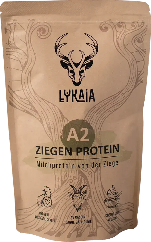 Alle Informationen zu A2 Ziegen Protein Das erste Proteinpulver aus 100% A2 Ziegenmilchneutral und cremigohne Zusatzstoffesehr gut verträglichMal kurz vorab, es schmeckt nicht nach Ziege. Lykaia Ziegen Protein ist ein cremiges und neutrales Proteinpulver aus A2 Ziegenmilch. Es ist hitzestabil und daher vielseitig einsetzbar. Üblicherweise verwenden wir eine Menge von 20 bis 30 g pro Mahlzeit, z.B. als Shake oder als Zugabe für Porridge und Smoothie Bowls. Wir haben auch jede Menge Rezepte mit A2 Ziegen Protein entwickelt. Von Bananenbrot bis zum cremigen Salatdressing ist alles möglich!