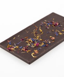 Dark chocolate in perfect harmony with wild orange oil and the delicate scent of the sprinkled blossoms