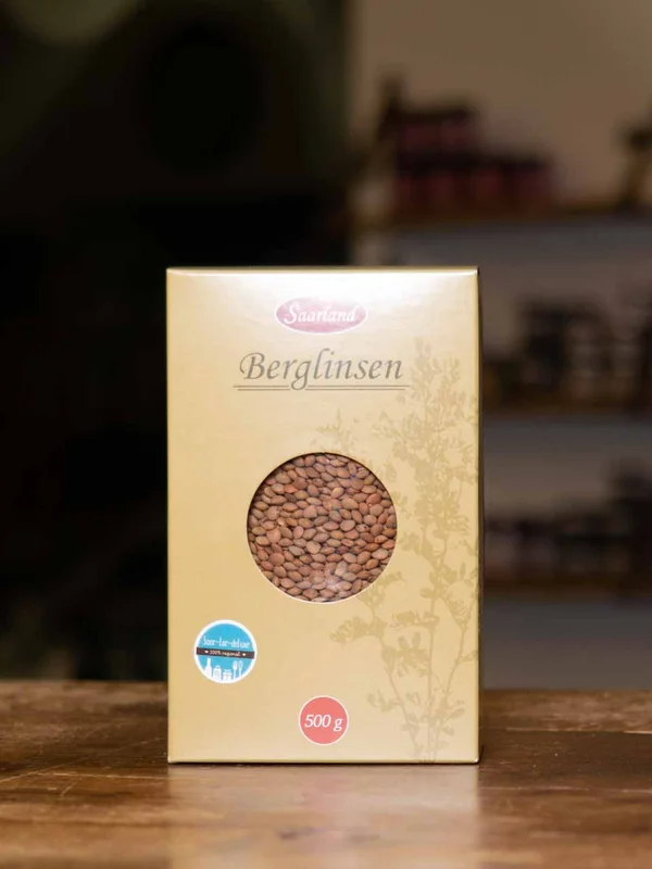 Linsen aus bergigen RegionenDiese Berglinsen werden im saarländischen Obertal angebaut. Die festkochenden braunen Linsen eignen sich aufgrund der Bissfestigkeit perfekt für Salate, Bratlinge aber auch vegane Fleischersatzprodukte.Wenn man sie kocht, entwickelt sich ein erdig-nussiges Aroma mit leichter Maronen-Note. Vor dem Kochen müssen die Linsen nicht eingeweicht werden. Die Kochzeit beträgt ca. 30-40 Minuten.Berglinsen sind eine Sorte von Linsen, die in den Bergregionen Europas und Asiens angebaut werden. Sie sind in der Regel kleiner als herkömmliche Linsen und haben eine grün-braune Farbe. Berglinsen sind reich an Proteinen, Ballaststoffen, Eisen, Kalium und Vitamin B1. Sie sind auch eine gute Quelle für komplexe Kohlenhydrate und helfen daher, den Blutzuckerspiegel stabil zu halten. Berglinsen haben einen nussigen Geschmack und eine feste Textur, was sie zu einer beliebten Zutat in Suppen, Eintöpfen und Salaten macht. Sie sind auch eine ausgezeichnete vegetarische und vegane Proteinquelle und können eine gesunde Alternative zu Fleisch darstellen.Die Linse gehört zu den ältesten Kulturpflanzen der Erde, schon vor 10.000 Jahren hat der Mensch sie angebaut. Nachdem sie lange auf eher wenig Interesse stieß, feiert sie nun ein Comeback in vielen Küchen.Linsen schmecken nicht nur lecker. Sie haben es in sich: Sie haben einen hohen Gehalt an Eiweiß, sind reich an Ballaststoffen und somit ein idealer Energielieferant für Vegetarier. Aber nicht nur. Denn Linsen mit Speck sind auch eine tolle Kombi. Linsen passen immer, im Salat, als Gemüse, als Bratling oder zu Püree oder als Brotaufstrich zerstampft, als Beilage oder als Hauptgericht. Zu weißem Fisch ein Augenschmaus und in Pastagerichten sind sie auch ganz besonders.