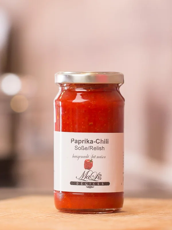 Englische Würze aus dem BliesgauEin Relish, auf English Würze, ist eine Würzsauce, die auf Basis von Obst oder Gemüse mit Essig, Zucker und Gewürzen hergestellt wird. Wie Chutneys ist es vom Geschmack süß-sauer. Relishe können grundsätzlich zum Würzen eingesetzt werden und passen hervorragend zu Curry-Gerichten. In einem Burger und als Sauce beim Grillen ist ein Relish ein besonderer Begleiter.Das Paprika-Chili Relish von Mali’s Delices ist genau richtig: fruchtig und scharf und süß-sauer.Alles handgemacht, im Bliesgau von der kleinen Goutmet Genussmanufaktur Mali’s Delice.