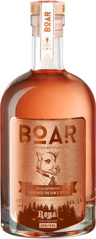 More information about Boar Royal Ruby The BOAR Royal Rubin is an exclusive drop that has been matured in barriques in a limited edition and is now available in an elegant gift box.This royal gin unfolds a bouquet of the finest aromas of vanilla, woody notes, juniper, lavender and natural Black Forest herbs.The special feature of this creation is its refinement and harmonization with essences of the rare Black Forest gold – the Black Forest truffle.This gives the BOAR Royal Ruby a unique note and makes it a real experience for the senses.