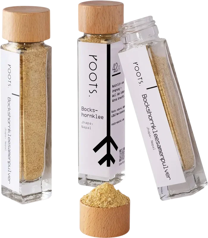 Alle Informationen zu Bockshornklee Pulver Mit Bockshornkleepulver kannst du ausgezeichnet zahlreiche Gerichte verfeinern. Verwende dafür nur eine oder zwei Messerspitzen – das Pulver schmeckt zunächst sehr bitter, die Bitterstoffe verflüchtigen sich allerdings größtenteils beim Braten und Kochen. Egal ob bei Pfannengerichten, in Brühen oder Saucen – das aromatische Pulver bringt jede Menge Schwung in deine Gerichte. Dafür ist im Wesentlichen Sotolon verantwortlich. Denn der Aromastoff stärkt den Geschmack umami, der bekanntlich für die Vollmundigkeit sorgt.Bockshornkleepulver oder Bockshornkleesamen verwendenSelbstverständlich kannst du die Samen des Bockshornklees auch selbst zu Pulver verarbeiten, allerdings ist dies mühsam, da die Bockshornkleesamen sehr hart sind. Werden diese nicht fein genug verarbeitet, stören kleine „Sandkörnchen“ den Genuss. Zudem sind die Verwendungsmöglichkeiten sehr unterschiedlich – hier ein paar Empfehlungen:Bockshornkleesamen: Käse, Tee, Eintöpfe, Anrösten (für Gewürzmischung), Sprossen (Keimen lassen).Bockshornkleepulver: zum Verfeinern von Suppen, Brühen, Saucen, Kartoffel-, Gemüse-, Fisch- oder Fleischgerichte.