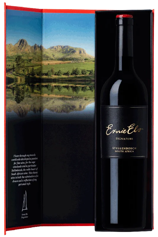 Alle Informationen zu Ernie Els Signature 2015 Klassisch und kraftvoll – das ist der Ernie Els Signature. Das Rotwein-Cuvée aus Cabernet Sauvignon (60%), Merlot (25%), Cabernet Franc (5%), Malbec (5%) und Petit Verdot (5%) ist das Flaggschiff des Gutes und beeindruckt mit seinem unglaublichen Facettenreichtum. Eine Melange aus getrockneten Früchten, Pflaumen, Kakao und Vanille verwöhnt die Sinne. Würzige Nuancen und Noten von Sandelholz und Veilchen untermalen gekonnt die Aromen dunkler Früchte. Töne wie Leder, Tabak, Zigarre und Fynbos verleihen dem Ernie Els Signature noch mehr Komplexität und Tiefe. Vollmundig im Geschmack, verweilt der Rotwein mit der guten Tanninstruktur lange Zeit am Gaumen. Das Cuvée reifte zwanzig Monate in französischer Eiche und passt hervorragend zu aromatischen Gerichten mit Wild oder dunklem Fleisch. Aber auch pur ist der charakterstarke Ernie Els Signature ein Geschmackserlebnis.