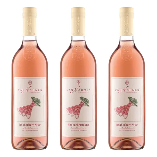 Der Rhabarbersaft für diesen Nektar wird ausschließlich aus den rotstieligen Rhabarbersorten »The Sutton« und »Frambozen« gekeltert, die ihm sein feines Aroma und die zartrosa Färbung geben. Vornehmlich stammt der Rhabarber von Kleinbauern aus der Köln-Bonner Tiefebene, da diese klimatisch besonders gut zum Anbau geeignet ist oder aus regionalem Anbau. Der fein-säuerlich fruchtige Rhabarbersaft hat einen Fruchtanteil von mindestens 70%, also nicht zu viel Säuregehalt, um ihn pur zu trinken. Schmeckt aber auch besonders als Schorle und mit Sekt. Der Saft passt dazu sehr gut als Begleiter zu Fisch und Fleisch, zu Krustentieren und Meeresfrüchten, sowie zu Salaten und Vorspeisen.