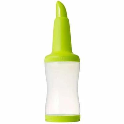 Es gibt wahrscheinlich keinen Bartender, dem keine Schweissperlen auf der Stirn stehen, wenn plötzlich eine Masse an neuen Bestellungen hereinkommt. Und dann passiert immer das gleiche: der Saft für die Cocktails ist alle, es muss ein neuer Karton in eine Ausgiessflasche umgefüllt werden, der Verschluss klemmt schon wieder und beim Einschenken schwappt alles über, weil man es nicht eilig genug haben kann. Mit der Freepour Flasche hat man nun diese Situationen bestens im Griff. Der zweifache Speed Mixing-Rekordhalter Paul Martin hat diese clevere Freepour Flasche aus relativ bruchbeständigem Plastik entwickelt, die so viele kleine Details enthält, um des Barkeepers Leben leichter zu machen, dass man danach nicht mehr ohne diese Flaschen auskommt. Ein Luftloch an der Schulter verhindert das Schwappen beim Einschenken, durch die taillierte Flasche hat man einen guten Griff, zum Lagern kann der Ausgussdeckel einfach abgeschraubt und gegen einen normalen Deckel – der das Aufeinanderstapeln erlaubt – austauschen, sie passt in jedes Bar-Speedrail und ihr Fassungsvermögen ist 105cl. Dies bedeutet, dass man einen kompletten Literkarton einfüllen kann, von dem normalerweise etwas über bleibt, da die meisten Pour-Flaschen in Amerikanischen Quarts gemessen werden. Spülmaschinenfest und in den tollsten Farben erhältlich, wird das Säubern der Freepour Flaschen und das Auseinanderhalten der verschiedenen Säfte zum Kinderspiel. Factsheet als PDF downloaden Freepour Flasche grün 105cl |Drinks.ch