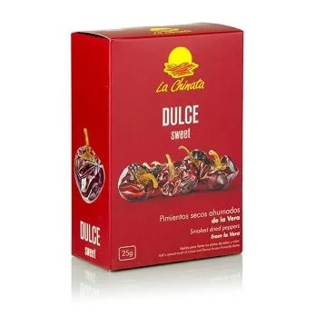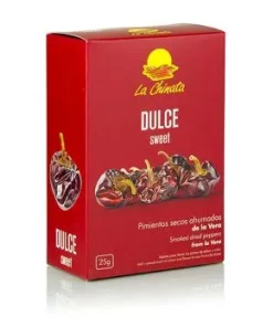 Getrocknete, geräucherte Paprika, süß. Zutaten: 100% getrocknete, geräucherte Paprika. Kühl, trocken und lichtgeschützt lagern.Eigenschaften: glutenfrei.