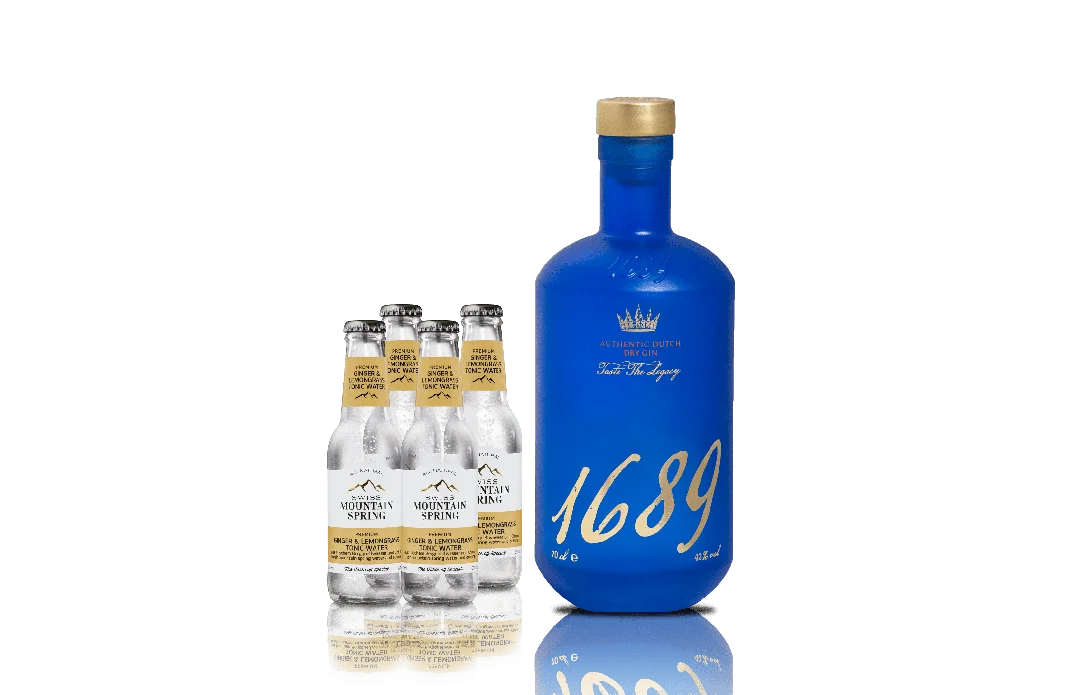 More information about Gin & Tonic Set The harmonious combination of a traditional gin with a modern, aromatic premium tonic water. What is included in the package1x 1689 Dutch Dry Gin – 0,7 l | 42 % vol.With the Gin 1689 we go on a journey back in time to the origin of the gin wave. Because with William of Orange Nassau, a Dutchman ascended the British throne in 1689. He promoted the production of his beloved juniper schnapps called Genever from his old homeland. That was the initial spark for British gin.In 2016, the founders of Gin 1689 followed the opposite path. During their time in London, they discovered a 350-year-old recipe on how to make gin. After extensive research in the British Library and the study of historical documents, the gin founders turned to the distillery Herman Jansen. This already exists since 1777 in the Dutch Schiedam, near Rotterdam. The result is Gin 1689 – a gin that brings together English gin and Dutch genever culture.Lead Botanicals: Anise, Quince, JuniperTaste: spicy, fruity4x Swiss Mountain Spring Ginger & Lemongrass Tonic – 0,2 lThe fresh exotic: with natural flavors of selected ginger and lemongrass from India as well as high-quality quinine of natural origin from India and Indonesia.Taste: ginger, lemongrass, fresh, bitter.Ingredients: Mineral mountain spring water (Allegra Switzerland), sugar, carbonic acid, acidifier: citric acid, natural flavors, quinine of natural origin.Nutritional values per 100ml: Energy: 153 kJ/36 kcal | Fat: 0 g | of which saturated fatty acids: 0 g | of which unsaturated fatty acids: 0 g | Carbohydrates: 8.6 g | of which sugar: 8.6 g | Protein: 0 g | Salt: 0 g