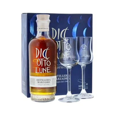 Grappa Marzadro 18 Lune 50cl Set mit zwei Gläser