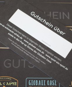Zusätzlich können Sie den Gutschein in unseren Popup-Stores der Globalen Oase für Leckeres und Schönes einlösen.