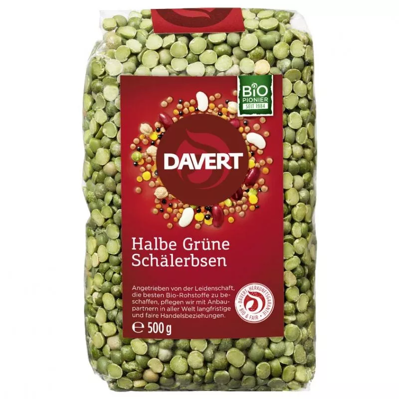 Grüne Erbsen sind fest, aber mehlig in der Konsistenz, herzhaft im Geschmack und traditionell einsetzbar für kräftige Suppen- und Eintopfgerichte, aber auch für Bratlinge. Grüne halbe Erbsen sind geschälte Erbsen und daher schneller gar und besser verträglich. Die halben Erbsen brauchen nicht eingeweicht zu werden und sind bereits nach einer guten halben Stunde gar. Da sie besonders schnell zu Brei kochen, eignen sich diese Erbsen gut für Cremesuppen oder als Püree. Erbsenpüree bietet eine interessante Abwechslung zu dem üblichen Kartoffelpüree. Auch köstliche Füllungen lassen sich mit ihnen bereiten.