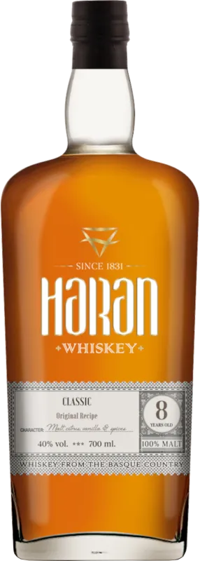 HARAN Whiskey wird aus 100% Malt destilliert, der nach traditioneller schottischer Methode aus feinster Gerste entsteht. Die Masterdistiller von ACHA wählen für die 8 jährige Reife ausschließlich Fässer aus umliegenden Wäldern von Navarra. Der finale Blend wird mit reinem Wasser aus dem Fluß Nervión auf Trinkstärke gesetzt. HARAN ist goldgelb mit Aromen von Gerste, Malz, Honig, Zitrus,Vanille und Gewürzen. Er hat Finesse, Komplexität und ist im Gaumen weich und seidig. Sehr gut pur zu trinken, aber auch mit max. 20% kühlem Tafelwasser gemischt.