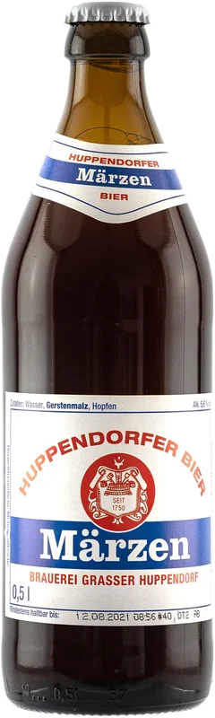 Alle Informationen zu Huppendorfer Märzen Mit ihrem Märzen hat die Brauerei Grasser aus Huppendorf einen echten Klassiker wiedererweckt: Nachdem es jahrelang aus dem Sortiment der Traditionsbrauerei verschwunden war, haben die Brauer ihr Märzen 2014 erstmals wieder gebraut und einen Volltreffer gelandet. Das Huppendorfer Märzen begeistert mit kräftigem Malzcharakter und einer großzügigen Hopfengabe, die das Malz mit ausgewogener Bittere und einer satten Kräuternote ergänzt.Traditionell wird das Märzen im Frühjahr gebraut und Ende April angestochen. Als man aufgrund fehlender Kühlmöglichkeiten früher nur in der kälteren Jahreszeit brauen konnte, war das Märzen eines der letzten Biere, das vor dem Sommer gebraut werden konnte und wurde dementsprechend gebührend gefeiert. Heute braut man das ganze Jahr über, doch wir feiern das Märzen dennoch!Der Huppendorfer Frühlings-Klassiker präsentiert sich in prachtvollem Kupferrot im Glas und krönt sich mit einer Handbreit leicht getönten Schaums. Ein unwiderstehlicher Duft nach geröstetem Brot, karamelligem Malz und dezent fruchtigem Hopfen verführt zum ersten Schluck. Dieser offenbart ein kräftiges Märzen mit feinsinnig ausbalancierter Aromatik: Vollmundige Noten von geröstetem Malz treffen am Gaumen auf sahniges Karamell, dunklen Kakao und ofenfrische Kekse. Der Hopfen liefert harmonische Klänge von aromatischer Orangenschale und herben Kräutern. Die weiche Malzsüße wird von einer trockenen Hopfenbittere ausbalanciert, ein Hauch Rauch rundet das Aromenspiel meisterhaft ab.Das Huppendorfer Märzen ist eine Legende unter seinesgleichen!