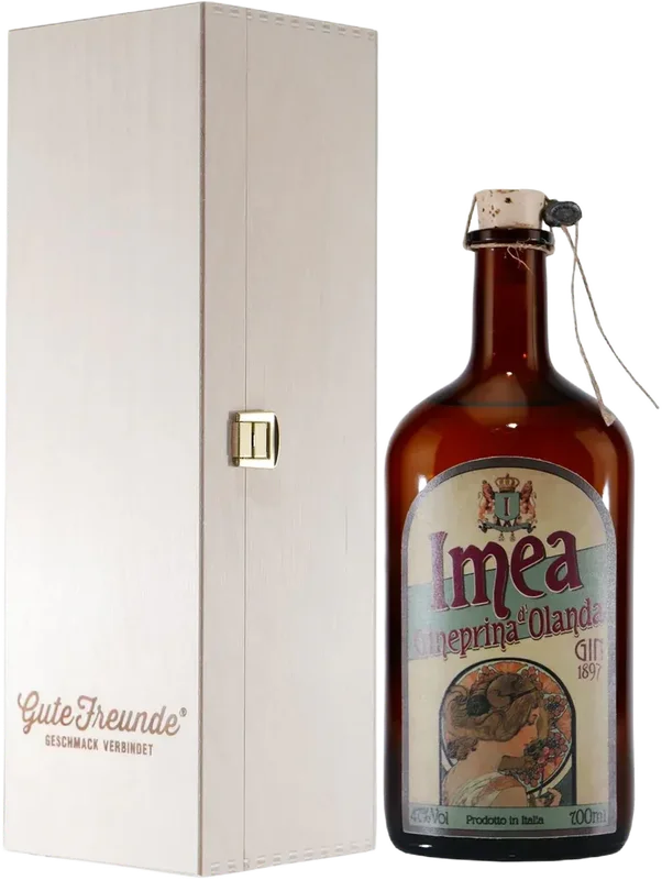 Alle Informationen zu Imea Gineprina d’Olanda Gin mit Geschenk-Holzkiste Imea Gineprina d’Olanda GinWacholder ist eindeutig die Hauptzutat bei Imea Gineprina d’Olanda Gin. Zusammen mit Anis, dem dominierenden Gewürz der Kolonialzeit, Gewürznelken, Zimt und Muskatblüte, entwickelt dieser Gin einen exotischen, aber definitiv italienischen Touch.Ausgewählte Gin-Spezialitäten im GUTE FREUNDE Shop kaufen.Rechtlicher HinweisAb 18! Dieses Produkt enthält Alkohol und darf nicht an Personen unter dem gesetzlichen Mindestalter abgegeben werden. Eine Lieferung an Minderjährige ist nicht möglich. Mit Ihrer Bestellung bestätigen Sie, dass Sie das gesetzlich vorgeschriebene Mindestalter haben. Bitte seien Sie verantwortungsvoll im Umgang mit diesem Artikel. Weitere Informationen unter kenn-dein-limit.info. Es wird keine Gewähr dafür übernommen, dass der gelieferte Artikel vollkommen identisch mit dem auf dem Online-Angebot gezeigten Bild ist. Dies gilt in besonderem Maße für nummerierte Abfüllungen, Jahrgänge und für Änderungen von Flaschenausstattungen und Verpackungen, die einem lieferantenseitigen Wechsel unterworfen sind. Bei den Bildern handelt es sich um Beispielbilder, die wesentlichen Merkmale des Artikels befindet sich in der Artikelbeschreibung.Der Markenname ist Eigentum des Rechteinhabers. Die Verwendung des Markennamens dient hier lediglich der Indentifizierung der Ware sowie der Kennzeichnung der Qualität und soll keineswegs eine Schutzrechtsverletzung darstellen.Inverkehrbringer: TEK BAR SRL – Via Newton 23 – Arezzo – Italia