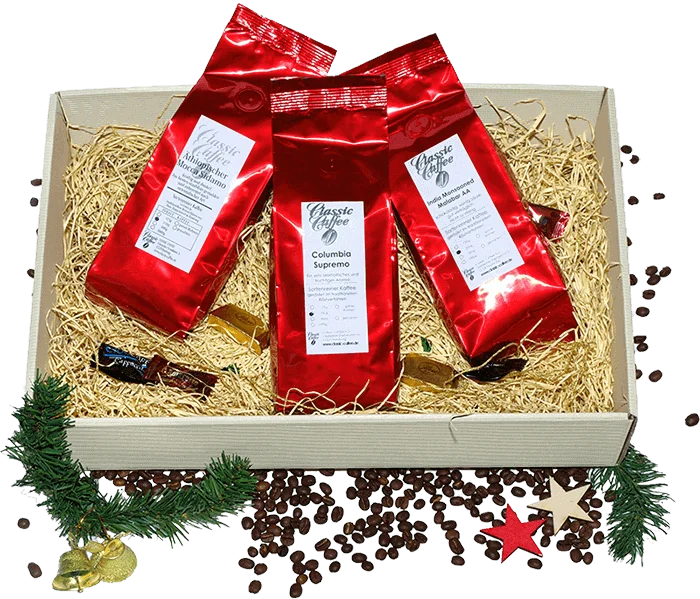 Alle Informationen zu Kaffee Adventspaket Kaffee! Immer ein gelungenes Geschenk! Deshalb haben wir für Sie ein ganz besonderes Präsent zusammengestellt – mit drei Kaffeesorten von drei unterschiedlichen Kontinenten.Inhalt:1x Äthiopisch Mocca Sidamo – 250 gDer Äthopische Mocca Sidamo ist ein kräftig, würziger Kaffee aus dem Mutterland des Kaffees.1x Columbia Supremo – 250 gDer Columbia Supremo ist ein Kaffee aus Südamerika. Durch die Äquatornähe und der Bodenbeschaffenheit wächst der Kaffee in einer bestechenden Qualität, schokoladig, weich und sehr aromatisch.1x India Monsooned Malabar – 250 gAbgerundet wird die Komposition durch einen ganz besonderen Kaffee aus Asien. Der India Monsooned Malabar hat einen unverkennbaren Eigengeschmack, er hat eine leichte Säure und ist kräftig im Aroma und Geschmack. Der Kaffee wird nach der Ernte ausgelegt und im Monsoonwind getrocknet, was ihn so beliebt und zugleich einzigartig macht.