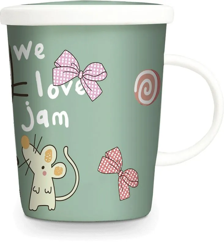 Teebecher mit Sieb & Deckel teacup with porcelain filter DEKOR KATZE & MAUS we love jam(wir lieben Fruchtaufstrich) Ø9,5 cm | H11 cm Genießen Sie Ihren Tee wie in China üblich. Keine Teeblätter mehr im frisch zubereitetem Tee. Die Teeblätter bleiben nach dem Herausnehmen des Porzellanfilters im Filter. Der Deckel hält Ihren Tee für lange Zeit warm. Maße, alle circa:Ø 9,5 cm mit Deckel | Ø 8,5 cm Tasse oben | Ø 7 cm Tasse untenHöhe 11 cm | Höhe mit Deckel 11,5 cm Fassungsvermögen: ca. 300 ml Herkunft: China Versandgewicht: 1.100g