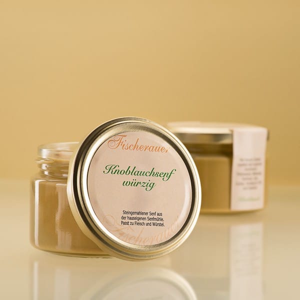 Intensiv duftiger Weingartenknoblauch verfeinert den klassischen und aromatisch würzigen Senf.