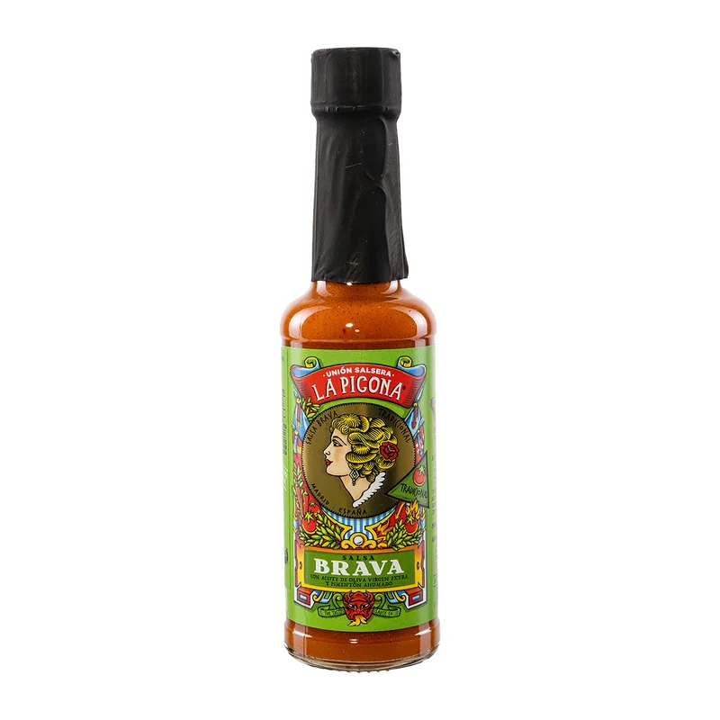 La Picona | Salsa Brava Tradicional | 147ml Die La Picona Salsa Brava Tradicional ist eine pikante spanische Sauce aus frischen Tomaten, nativem Olivenöl extra, Zwiebeln, Knoblauch und einer Kombination aus süßem und geräuchertem Paprikapulver. Die Salsa Brava Tradicional ist die traditionelle Salsa Brava, die nicht nur die Spanier so gern zu Patatas Bravas, zu knusprigen Kartoffelspalten, essen. Die würzige La Picona Salsa Brava Tradicional ist von geringer Schärfer, weich und zart, rauchig und voller Geschmack. Sie verleiht mediterranen Gerichten wie den Papas Arrugadas, salzigen Pellkartoffeln, den besonderen Kick, schmeckt toll auch zu Eiern, Nudeln mit Hackbällchen, auf Hotdogs, zu gedünstetem Fisch oder gegrilltem Fleisch. Du dachtest immer, dass Kartoffeln mit Eiern ein Gericht sind, das man nicht verbessern kann? Gebe einen guten Schuss La Picona Salsa Brava darauf und du wirst sehen, was passiert. Aber Achtung die wohl authentischste La Picona Salsa Brava Tradicional macht süchtig. La Picona | Salsa Brava von Unión Salsera aus Madrid Schon vor 50 Jahren hat die Unión Salsera aus Madrid Ehrlichkeit in die beliebte spanische Sauce, die Salsa Brava, gebracht und die übliche Rezeptur neu erfunden. Das war eigentlich einfach, wenn man wie die Unión Salsera gute, frische Zutaten verwendet. Tomaten sind dann echte Almería-Tomaten, die in echter Erde gewachsen sind und nachhaltig angebaut werden. Beim Öl wird nicht irgendein Öl, sondern natives Olivenöl extra verwendet. Das geräucherte Paprikapulver, Pimentón de Candeleda, ist ursprungsgeschützt und kommt aus Candeleda. Die La Picona Salsa Brava Tradicional besteht aus hochwertigen und 100% natürlichen Zutaten, ohne Konservierungsstoffe und ohne zugesetzten Zucker, glutenfrei und abgefüllt in recycelbaren Verpackungen. „Vom Garten auf den Teller“ oder bei dieser Sauce sagen würde „vom Garten in die Flasche“. Neben der fast milden La Picona Salsa Brava Tradicional mit grünem Etikett, gibt es noch die schärfere Picante und die höllisch scharfe Infierno Sauce. Entdecke bei uns deine Lieblingssauce von Unión Salsera aus Madrid.