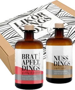 Alle Informationen zu Likördings Box Entdecke die exklusive Likördings Box – XXL #3, eine besondere Auswahl feiner Liköre für festliche Anlässe oder als luxuriöses Geschenk. Diese Likörbox vereint fruchtige und cremige Aromen, die ideal für den Winter sind.Die Likördings Box – XXL #3 enthält:1x Bratapfeldings Bratapfellikör – 500 ml | 20% vol.Feine Wintergewürze, wie Ceylon-Zimt, Nelken, Sternanis und vieles mehr, verleihen dem Bratapfel-Likör die weihnachtliche Note. Mit seinem aromatischem Geschmack erzeugt er mit jedem Schluck ein wohliges Gefühl und sorgt daher für weihnachtliche Stimmung.1x Nussdings – Haselnusslikör – 500 ml | 20 % vol.Dieser Haselnusslikör ist ein vollmundiger, nussiger und süßer Gaumenschmaus für jeden Anlass.1x Pflaumendings – Pflaumen-Zimt-Likör – 50 ml | 20% vol.Pfaumen-Likör mit winterlichen Gewürzen und Zimt. Saftige Pfaumen von der Obstreuwiese gepaart mit köstlichen winterlichen Gewürzen. Die besondere Note Zimt, rundet den Likör sehr gut ab!