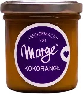 Alle Informationen zu Marge’s Kokorange Marmelade Grundsätzlich bevorzuge ich Fruchtaufstriche. Das mag am höheren Fruchtanteil liegen. Doch manchmal kommt man um die klassische Marmelade nicht herum. So auch bei meiner Kokorange. Auf die Idee für diese Kombination kam ich in Asien, wo Ingwer und Kokosnuss nicht vom Speiseplan wegzudenken sind. Und so kombinierte ich diese Asiatischen Klassiker mit Orangen, was einen ganz besonderen Geschmack ergab.GeschmackKokorange Marmelade vereint den frischen Citrusgeschmack von Orangen mit der leichten Schärfe des Ingwers unterstrichen durch eine leichte Kokosnote.Serviert:Viele meiner Kunden verfeinern mit Kokorange asiatische Gerichte. Ich nutze die Marmelade gerne zu Geflügelfleisch – und natürlich zum Frühstück. Am liebsten auf Pumpernickel.
