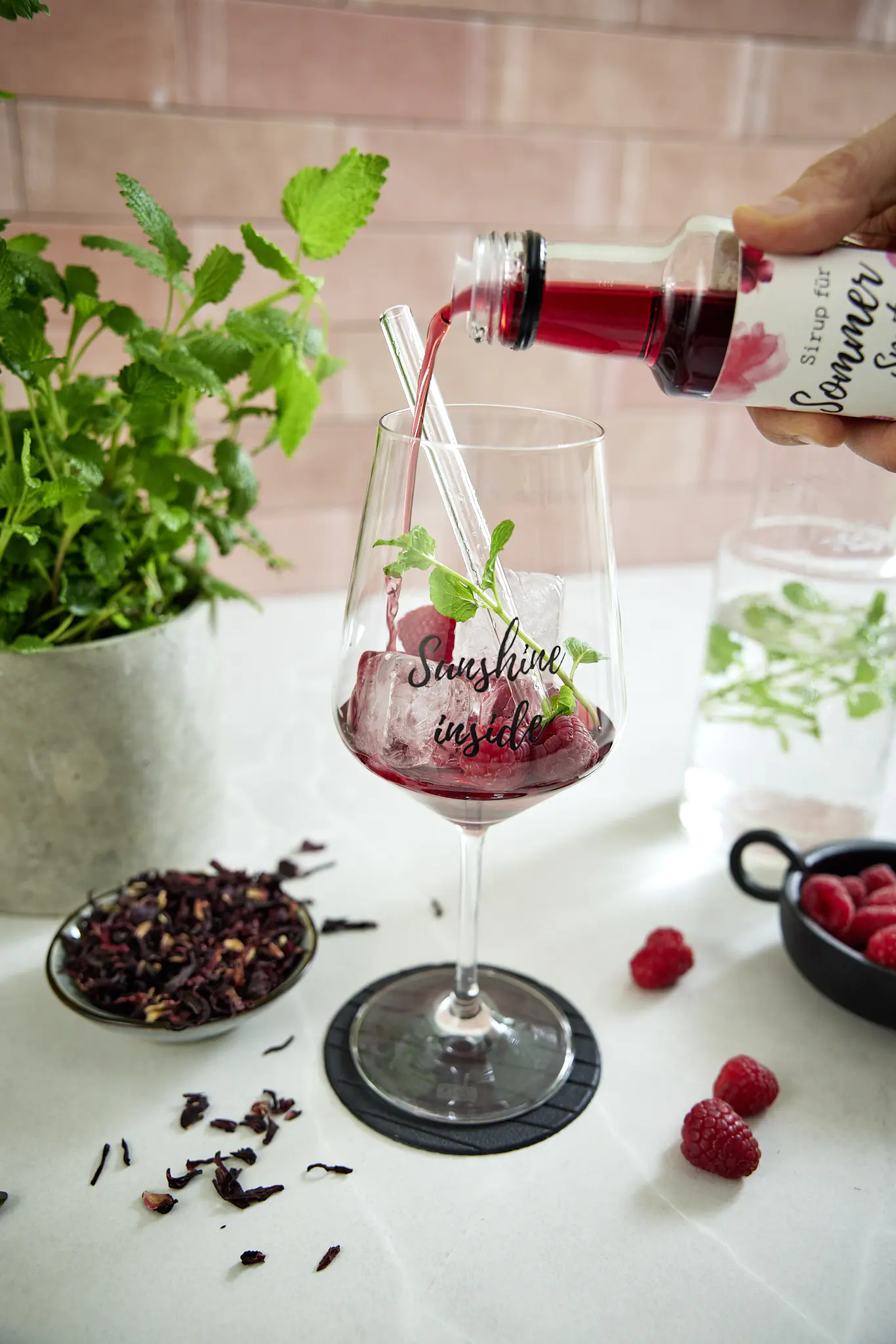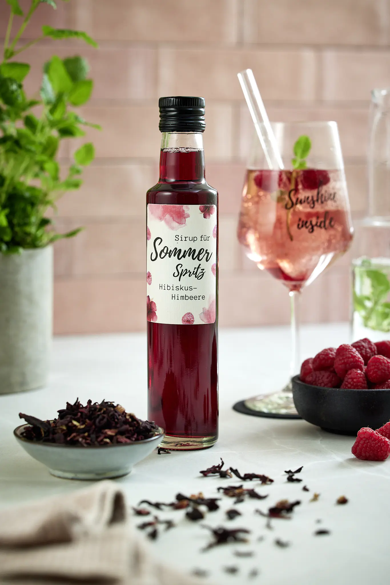 Der Sirup für Sommer Spritz Hibiskus-Himbeere schafft die ideale Erfrischung an heißen Sommertagen.