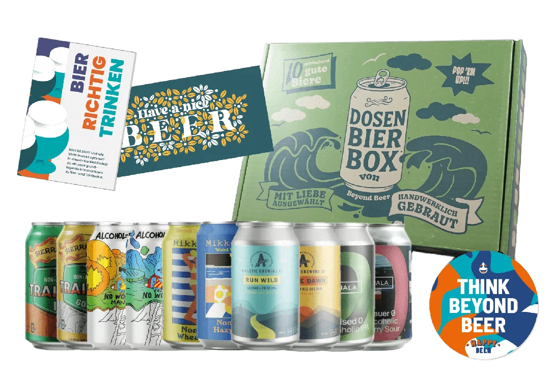 More information about Non-alcoholic craft beer gift box The alcohol-free craft beer selection for connoisseurs: 10 different beers from the best breweries in Europe and the USA – full of flavor, completely alcohol-free. Ideal for conscious connoisseurs, sporty moments or as a creative gift.This is included 10 canned beers – 10 varieties × 1 can each Varied selection: Pale ale, IPA, golden ale, fruit beer & more Well-known breweries: Sierra Nevada, Mikkeller, Lervig, Põhjala & Athletic Brewing Sturdy, modern gift box – fits directly into the fridge Includes beer mat & info booklet about non-alcoholic craft beerContents of the box Athletic Brewing Golden Ale Light, refreshing golden ale with a fine malty sweetness and a gentle hint of hops. Athletic Brewing Run Wild IPA Full-bodied IPA with pronounced citrus and pine aromas – non-alcoholic yet strong in taste. Mikkeller Weird Weather 0.3 Alcohol-free Hazy IPA with tropical fruit and a creamy texture – intensely aromatic. Mikkeller Drink’in the Sun A classic among non-alcoholic pale ales – fruity, fresh and balanced. Sierra Nevada Trail Pass Golden Golden ale with floral hop notes and a soft malt body – balanced and light. Sierra Nevada Trail Pass IPA Non-alcoholic IPA with aromas of lemon, grapefruit and a dry finish. Lervig No Worries Norwegian Pale Ale 0.5 – light, fruity, refreshing and surprisingly full-bodied. Lervig No Worries Mango Same base as the original, refined with natural mango puree – tropical and tasty. Põhjala Prenzlauer 0.5 Berliner Weisse-style sour with raspberries – tangy, fruity and non-alcoholic. Põhjala Virmalized 0.0 Non-alcoholic IPA with strong hop notes, citrus and pine – Nordic clear and aromatic.Ingredients & alcohol content Athletic Golden Ale Ingredients: Water, barley malt, oats, hops, yeast Alcohol: Athletic Run Wild IPA Ingredients: Water, barley malt, hops, yeast Alcohol: Mikkeller Weird Weather 0.3 Ingredients: Water, barley malt, wheat, oats, hops, yeast Alcohol: 0.3 % vol. Mikkeller Drink’in the Sun Ingredients: Water, barley malt, hops, yeast Alcohol: 0.3 % vol. Sierra Nevada Trail Pass Golden Ingredients: Water, barley malt, hops, yeast Alcohol: Sierra Nevada Trail Pass IPA Ingredients: Water, barley malt, hops, yeast Alcohol: Lervig No Worries Ingredients: Water, barley malt, hops, yeast Alcohol: 0.5% vol. Lervig No Worries Mango Ingredients: Water, barley malt, mango, hops, yeast Alcohol: 0.5 % vol. Põhjala Prenzlauer 0.5 Ingredients: Water, barley malt, wheat malt, raspberries, hops, yeast Alcohol: 0.5 % vol. Põhjala Virmalized 0.0 Ingredients: Water, barley malt, hops, yeast Alcohol: 0.0 % vol.Notes All beers contain less than 0.5 % vol. alcohol or are brewed alcohol-free. Ideal as a gift or tasting box for conscious enjoyment. Variety composition may vary slightly depending on the season.Alcohol Free Craft Beer Selection – full variety, zero alcohol, real taste.