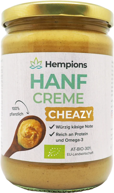 More information about Organic hemp cream Cheasy Paste made from organic hemp seeds with a nutty, spicy and cheesy taste. Suitable for eating raw. As a spread on bread and a base for sauces and dips.Rich in protein, omega-3 fatty acids, magnesium, iron and zinc.