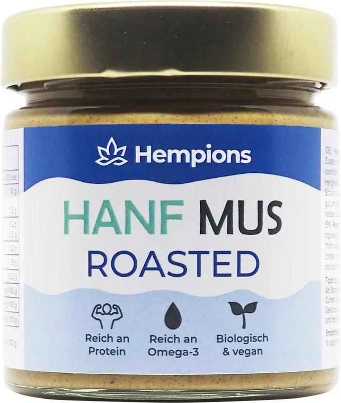 More information about Organic hemp puree roasted Organic hemp seeds hulled, gently roasted and processed into a paste. Suitable for eating raw. As a spread on bread, as a base for sauces, in smoothies, dressings, stews and desserts.Rich in protein, omega-3 fatty acids, magnesium, iron and zinc.