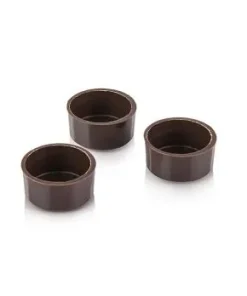 Pralinen-Schalen, rund; Zartbitterschokolade Durchmesser oben: 29mm; Durchmesser unten: 26mm Höhe: 14mm Gewicht: 2,2g/Stück Die Rohlinge sind regelmäßig gegossen und aus bester Kuvertüre hergestellt. Dieses Produkt eröffnet ganz neue Perspektiven bei der rationellen Pralinenherstellung. Die Vorzüge werden Sie bestimmt überzeugen!!!