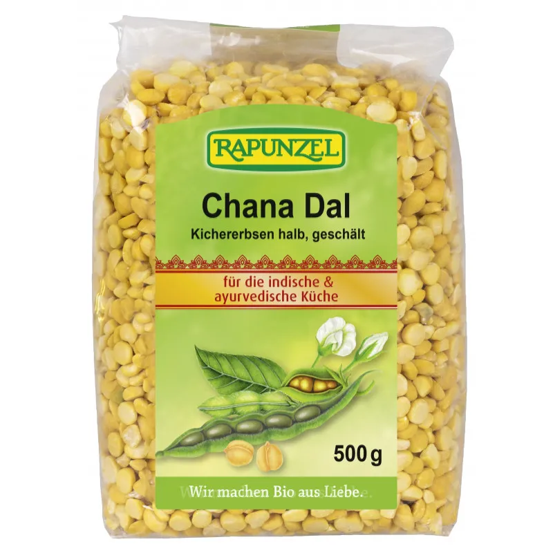 Chana Dal ist in der ayurvedischen und indischen Küche nicht wegzudenken und wird gewöhnlich mit Ghee, verschiedenen Gewürzen und Gemüse der Saison zubereitet und pur oder zu Reis serviert.