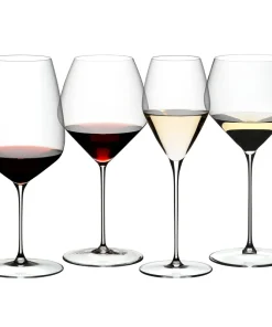 This Tasting Set contains 4 glasses from the RIEDEL Veloce series: Cabernet, Pinot Noir, Sauvignon Blanc and Chardonnay.Try your wine from 2 red wine and 2 white wine glasses and discover how the shape and size of your glass affect your perception of aroma and flavour. Each of the glasses in this set has been developed in a RIEDEL Sensory Workshop, designed to elevate and balance particular grape varieties for the ultimate experience in wine enjoyment.This product is made of clear crystal glass.RIEDEL Veloce is an impressive development based on state-of-the-art technology from RIEDEL’s own factory.The series uses the latest manufacturing technology to create products that feel handmade but offer the precision of machine production. With a lighter and finer profile, the glasses are ideal for new world wines and feature a base inscription of each recommended grape variety.This item is premium machine-made.“PREMIUM” defines the advantage of a machine blown RIEDEL glass vs. a hand-made glass. The difference lies within the precision.This item is dishwasher safe.This set contains from the RIEDEL Veloce collection: one Cabernet, one Pinot Noir, one Sauvignon Blanc and one Chardonnay glass.RIEDEL Veloce Tasting Set