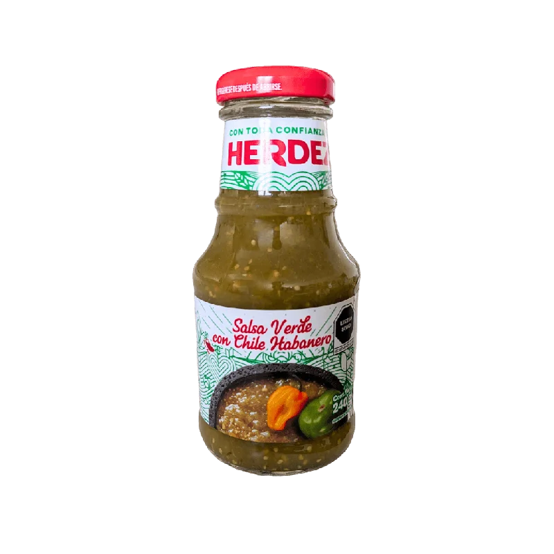 Die kleine schärfere Salsa Verde Picante mit Habanero Chili von Herdez in der 240g Version stillt eure Lust auf etwas Scharfes, besitzt aber weiter den frischen säuerlichen Geschmack der grünen Tomatensauce. Natürliche Zutaten sorgen für den bei Herdez Produkten typisch feinen Geschmack, der durch die Schärfe der Habanero-Chili und weiteren Beigaben wie Zwiebeln und Koriander begleitet wird. In Eurer Küche macht sich die Salsa ideal zur Verwendung bei köstlich scharfen Enchiladas, Quesadillas oder Rindfleisch-Tacos.