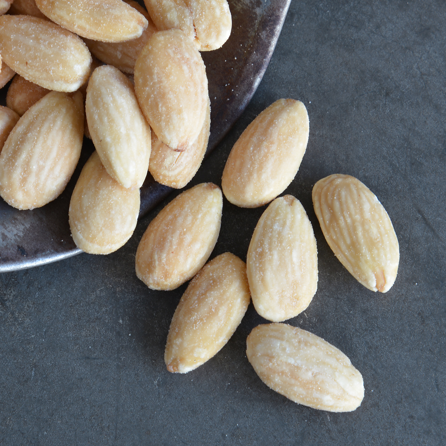 Peeled aperitif almonds, salted and roasted.