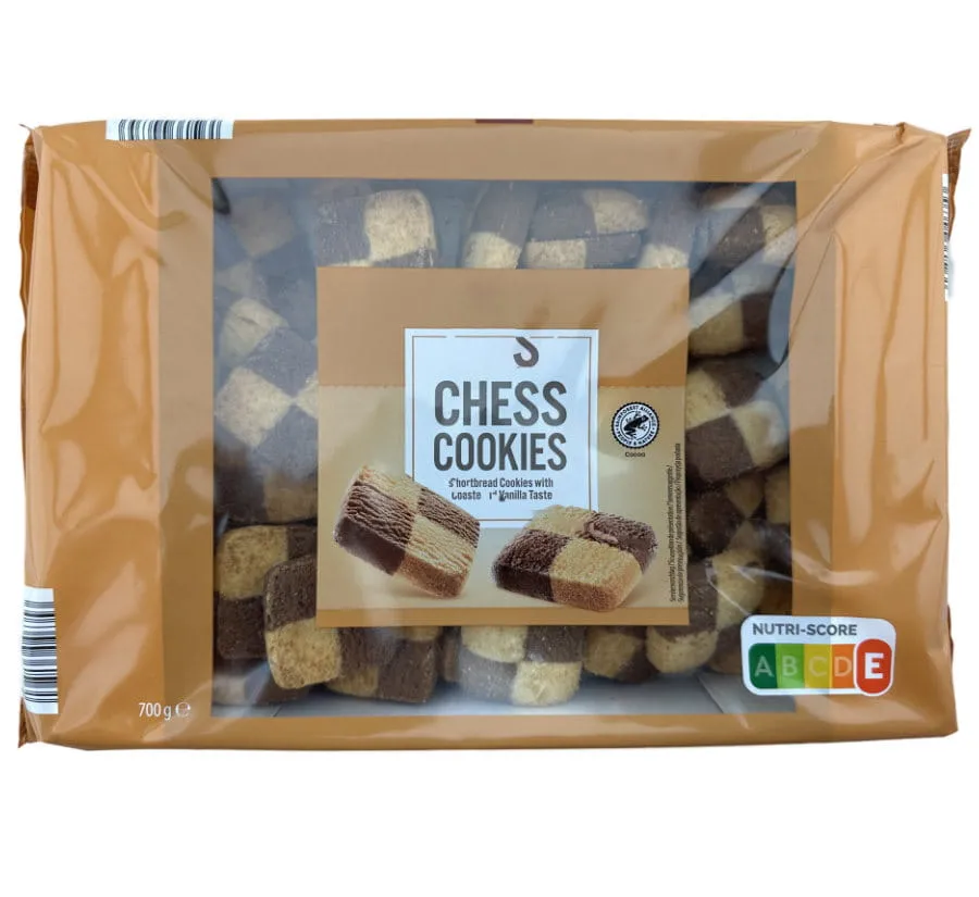 Zutaten: WEIZENMEHL, Margarine (Palmfett, Wasser, Sheafett, Rapsöl, palmkernfett, Kokosöl, Speisesalz, Emulgator: Mono- und Diglyceride von Speisefettsäuren, natürliches Aroma, Säureregulator: Citronensäure), Zucker, fettarmes Kakaopulver* 1,4%, Aromen, Rapsöl, Salz.