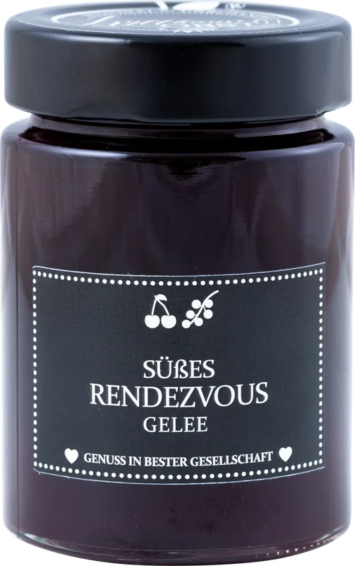 More information about „Sweet rendezvous“ cherry currant jelly For this fruity jelly, the finest fruit is cold-pressed into a delicious orchard juice, giving it its genuine, unadulterated fruity taste.Cherry-currant jelly