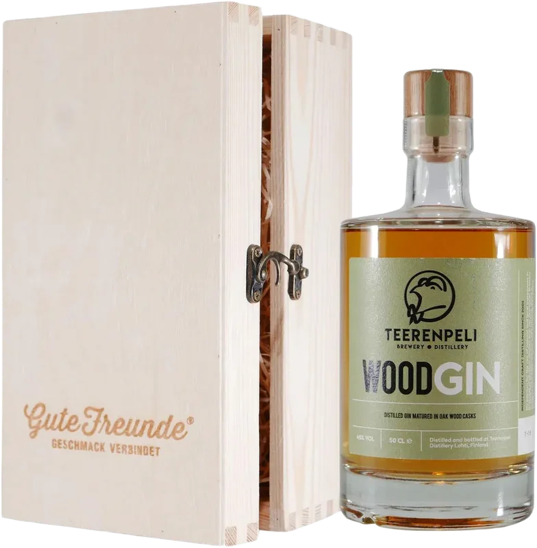 Alle Informationen zu Teerenpeli Wood Gin mit Geschenk-Holzkiste Teerenpeli Wood Gin wird in traditionellen, schottischen Pot Stills destilliert und anschließend in Eichenfässern gereift. Am Gaumen ist er weich und gut ausbalanciert, veredelt mit lokalen Inhaltsstoffen wie Birkenblättern, Preiselbeeren und Aromahopfen. Der Standort der 2002 gegründeten, familiengeführten Teerenpeli Brauerei & Destillerie inmitten wogender Gerstenfelder und reinstem, im Überfluss vorhandenen Grundwasser ist geradezu perfekt – die beste Voraussetzung, um gute Spirituosen herzustellen. Heute ist die Brennerei die größte Finnlands mit einer jährlichen Kapazität von 100 000 Litern Branntwein.Rechtlicher HinweisAb 18! Dieses Produkt enthält Alkohol und darf nicht an Personen unter dem gesetzlichen Mindestalter abgegeben werden. Eine Lieferung an Minderjährige ist nicht möglich. Mit Ihrer Bestellung bestätigen Sie, dass Sie das gesetzlich vorgeschriebene Mindestalter haben. Bitte seien Sie verantwortungsvoll im Umgang mit diesem Artikel. Weitere Informationen unter kenn-dein-limit.info. Es wird keine Gewähr dafür übernommen, dass der gelieferte Artikel vollkommen identisch mit dem auf dem Online-Angebot gezeigten Bild ist. Dies gilt in besonderem Maße für nummerierte Abfüllungen, Jahrgänge und für Änderungen von Flaschenausstattungen und Verpackungen, die einem lieferantenseitigen Wechsel unterworfen sind. Bei den Bildern handelt es sich um Beispielbilder, die wesentlichen Merkmale des Artikels befindet sich in der Artikelbeschreibung.Der Markenname ist Eigentum des Rechteinhabers. Die Verwendung des Markennamens dient hier lediglich der Indentifizierung der Ware sowie der Kennzeichnung der Qualität und soll keineswegs eine Schutzrechtsverletzung darstellen.Inverkehrbringer: Teerenpeli Yhtiöt Oy , Y-0957208-8, Rautatienkatu 26 E 1, 15110 Lahti, Finnland