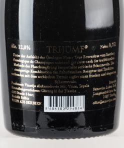 Der Trijumf Noir Schaumwein wird brut mit7,5 Gramm Restzucker ausgebaut und besticht durch seine ausgesprochen intensive Perlage. 100% Pinot Noir bringen eine enorm frische (grüner Apfel, Pfirsich), komplexe und kräutrig-würzige Aromatik zustande. Auch am Gaumen ist er fruchtig, trocken und frisch.