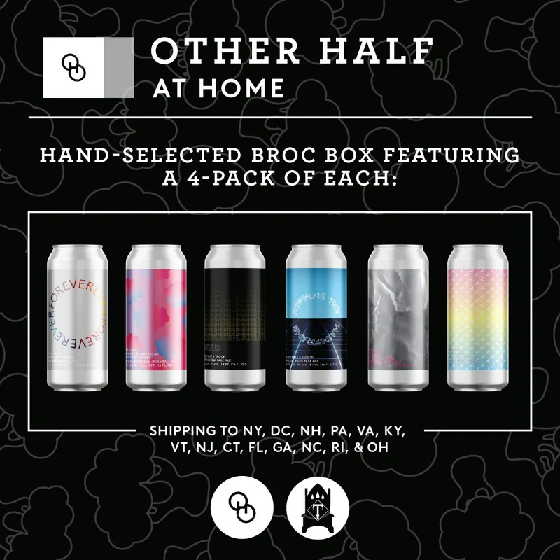 TROON BROCBOX PREORDER – BEGINS SHIPPING AUGUST 15thTo celebrate the launch of our newest collabs with our friends at Troon Brewing, we asked them to curate a special shipping case with six 4-packs of new releases and Other Half favorites. In addition to both new collaboration beers, this BrocBox features 4 Other Half classics hand-selected by the Troon team. Boxes are available for preorder and ship out starting next Monday from Brooklyn to all our direct states – NY, DC, NH, PA, VA, KY, VT, NJ, CT, FL, GA, NC, RI, and OH!**Note: a $10 restocking fee applied to canceled orders**Here’s what the team at Troon has selected for the box:Hopping the Mainframe Imperial India Pale Ale (10.0%)Brewed with Troon. We used one of our favorite heavily oated triple IPA recipes and hopped this beer with massive amounts of Nelson Sauvin and Motueka from our friends at Freestyle Hops and a heavy dose of our new favorite experimental hops, HBC 586.Doom Showers Imperial India Pale Ale (8.0%)Brewed with Troon. Troon brought the Doom to one of our favorite series with some changes. We’ve added some super soft flaked white wheat and while Citra is still in this beer it leads more with Riwaka with a dose of Motueka on the side.DDH Mylar Bags Imperial India Pale Ale (8.5%)One of our absolute favorite imperial IPAs hopped with Amarillo, Galaxy, Citra, Mosaic and El Dorado and crushed with Citra and Mosaic lupulin powders plus more Galaxy.DDH Forever Ever Session India Pale Ale (4.7%)Our highly hopped, low ABV crusher brewed with Mosaic, Azacca and Citra and then double dry-hopped with even more Citra and Mosaic for full flavor in a small package.DDH Double Citra Daydream Imperial Oat Cream India Pale Ale (8.5%)Double Dry Hopped Double Citra Daydream is an Imperial Oat Cream IPA loaded with Citra and Citra Cryo like it’s going out of style.DDH Oh… Forever Imperial India Pale Ale (8.0%)Imperial version of our classic Oh… IPA double dry-hopped with Citra, Galaxy, and Motueka.