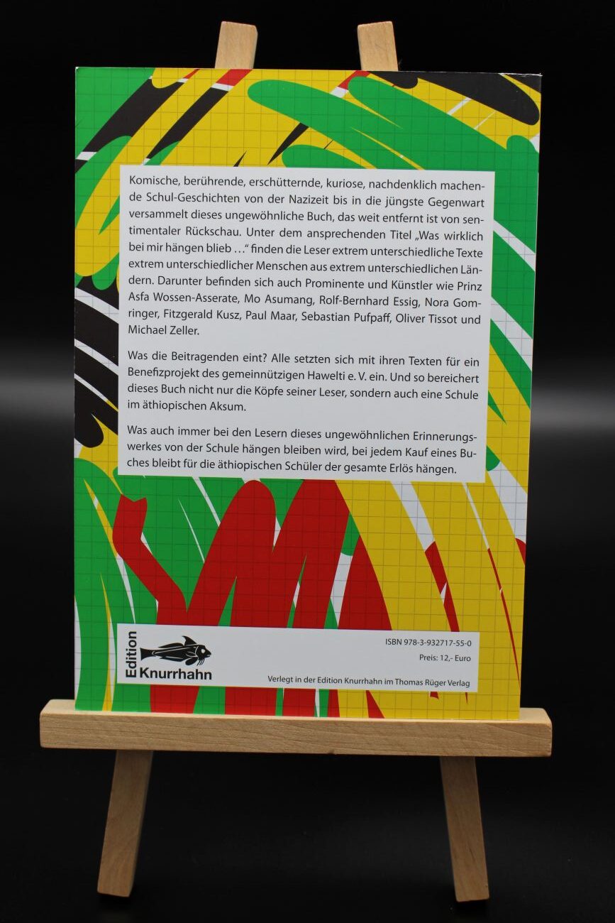 2016 überlegten wir also, wie man sonst noch Geld für Bildungsprojekte akquirieren könnte. So kamen wir zusammen mit Thomas Rüger vom Buchverlag „Edition Knurrhahn“ aus Nürnberg auf die Idee, dass wir doch mal bekannte Menschen anschreiben könnten, was denn bei ihnen noch konkret aus der Schulzeit hängen blieb.