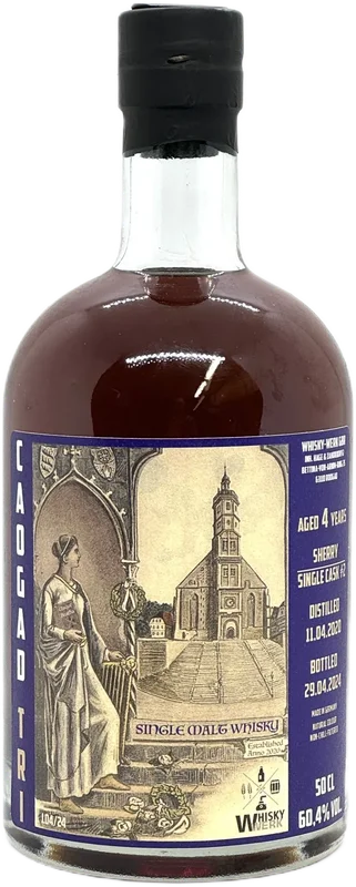 More information about Whisky factory Caogad Tri 4 2020-2024, ex-Sherry Cask Bottling: Caogad TriBottler: Whisky- Werk GbRAge: 4Region: GermanyDistilled: 11.04.2020Bottled: 29.04.2024Cask: ex Sherry CaskCask number: 2Alcohol: 60,4%Content: 0,5lwithout colorant: WhiskyProducer: Whisky-Werk GbR M. Hage & J. Zahorodnyj, Bettina-von-Arnim-Ring 35, 63110 Rodgau, GermanyResponsible food company: Whisky-Werk GbR M. Hage & J. Zahorodnyj, Bettina-von-Arnim-Ring 35, 63110 Rodgau, GermanyCountry of origin: Germany