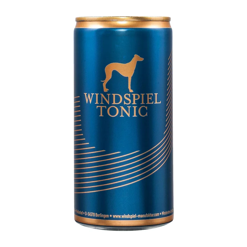 Windspiel | Tonic Water | Blaue Dose Das Windspiel Tonic Water in der blauen Dose ist das perfekte Tonic Water für den Windspiel Gin. Werde auch Du Windspiel Fan mit Gin und passendem Tonic Water. Probiere es aus! Windspiel | der Filler für den perfekten Gin Tonic Zu einem guten Gin braucht es auch ein passendes Tonic Water. Damit sich die Suche nach dem perfekten Filler für den Windspiel Gin sich ganz einfach gestaltet, hat das Unternehmen aus der Eifel einfach sein eigenes Tonic Water kreiert. Natürlich bleibt Windpsiel seiner Regionanlität auch beim Filler treu und verwendet hier eigens natürliches Mineralwasser aus der Eifel. Die Kohlensäure ist fein eingebettet, die Zitrusnote steht klar im Vordergrund: Limette, Bergamotte und Zitronengras stechen hervor, die bitteren Noten vom Chinin bleiben dezent im Hintergrund. Verpackt ist das Windspiel Tonic Water in einer blauen, schlanken Getränkedose im unverkennbaren Windspiel Design mit Windhund. Die kleinen Genussmomente machen das Leben so wertvoll. Damit die kleinen Genussauszeiten im hektischen Alltag nicht zu kurz kommen, bietet die Marke Windspiel neben dem alkoholfreien Wacholdergetränk ein passendes Tonic Water für den perfekten Genuss an. Bei diesem Produkt wird Pfand berechnet.