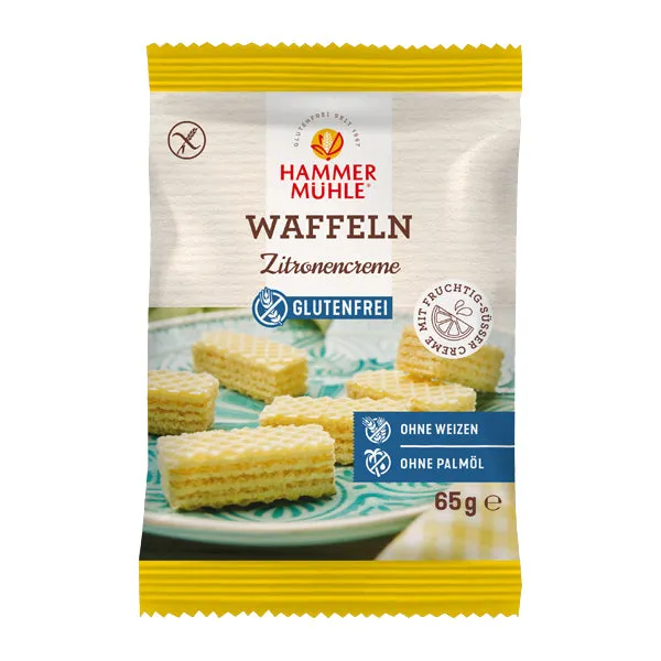 Die mit frisch-fruchtiger Zitronencreme gefüllten glutenfreien Waffeln sind zart-knusprig gebacken. Fünf einzelne Waffelblätter und die erfrischende Creme machen jede einzelne Portion zum knusprigen Genuss.