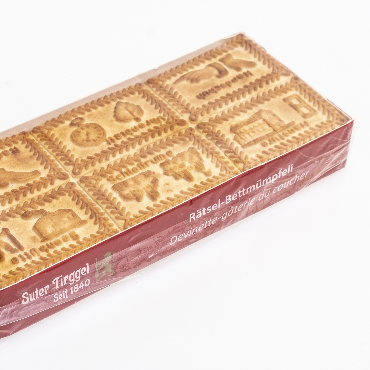 Züri-Tirggel is a traditional Zurich biscuit made from honey, flour, sugar and water. The biblical or local pictorial motifs are pressed into the dough with wooden models and then baked in the oven at high top heat, giving the biscuits a dark surface and a light underside. Tirggel should be left to melt slowly on the tongue so that the honey flavour can develop.